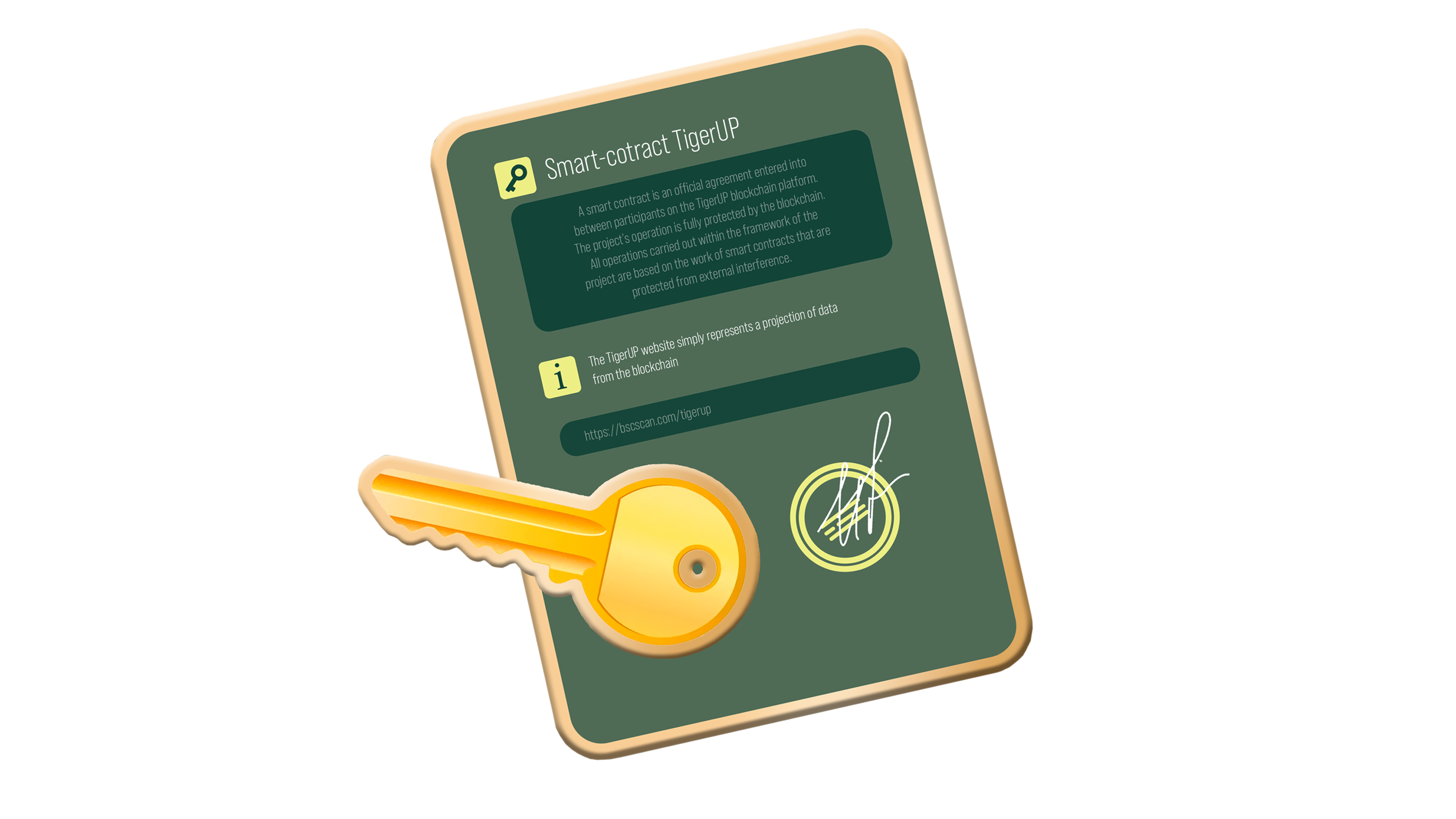 **TigerUP** uses blockchain technology, similar to Bitcoin, but thanks to the smart contract, the project has enhanced functionality that makes it safer and more transparent for all participants.